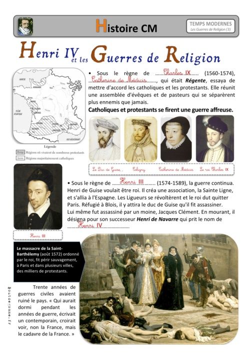 Henri IV et les Guerres de religion / révisions CM grâce à un style de référence pour les primaires: boutdegomme.fr